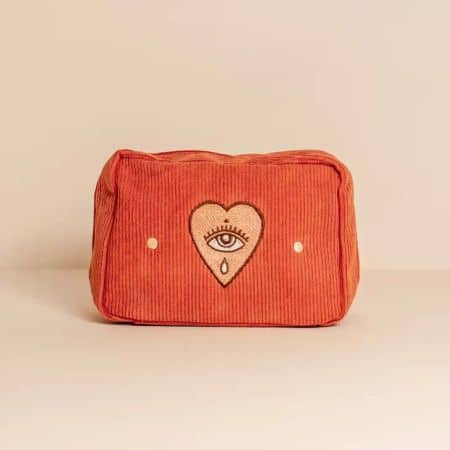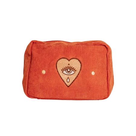 Een leuke toilettas voor in de badkamer, op reis of in je handtas kan natuurlijk niet ontbreken. Super praktisch met een dubbele ritssluiting, vakjes en altijd fashionable. De toilettas in de koraal teint heeft een oog afgebeeld in een hart op de voorkant. De toilettas is ideaal voor het opbergen van make-up, pennen, sleutels en andere kleine items.