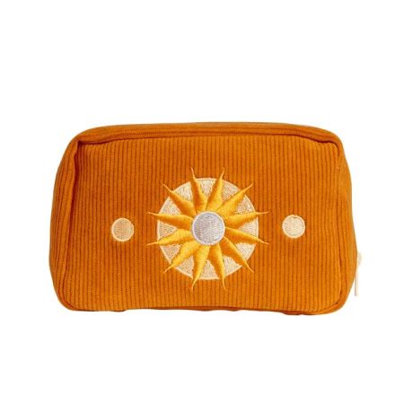 Een leuke toilettas voor in de badkamer, op reis of in je handtas kan natuurlijk niet ontbreken. Super praktisch met een dubbele ritssluiting, vakjes en altijd fashionable. De toilettas in de roest kleur heeft stralende zon op de voorkant. De toilettas is ideaal voor het opbergen van make-up, pennen, sleutels en andere kleine items.