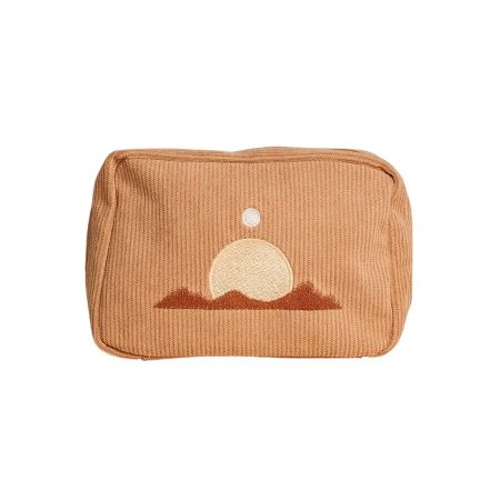 Een leuke toilettas voor in de badkamer, op reis of in je handtas kan natuurlijk niet ontbreken. Super praktisch met een dubbele ritssluiting, vakjes en altijd fashionable. De toilettas in de zand kleur heeft opkomende zon in de bergen op de voorkant. De toilettas is ideaal voor het opbergen van make-up, pennen, sleutels en andere kleine items.