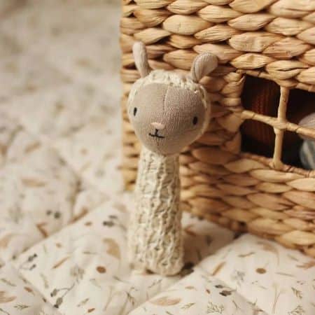 Met deze rammelaar kan jouw kleine zich uren vermaken. Het schattige schaapje maakt geluid als het wordt geschud, wat helpt bij de ontwikkeling van de fijne motoriek en coördinatie. De rammelaar is makkelijk vast te houden voor kleine handjes en zijn heerlijk zacht.